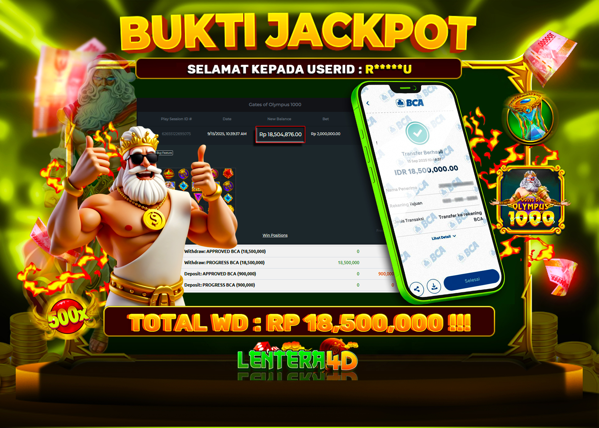 Satu lagi Bukti JP dan Pembarayan Sah Dan Dapat Dipertanggung Jawabkan, WD Berapapun Pasti Dibayar Lunas Hanya di Situs LENTERA 4D. Hati Hati Kepada Pihak Pihak Yang Mengatas namakan Pihak LENTERA4D Untuk Melakukan Penipuan.