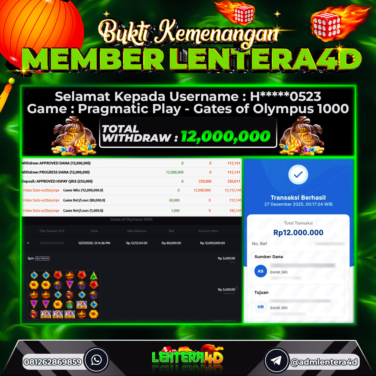 TOTAL KEMENANGAN : Rp 12.000.000,-