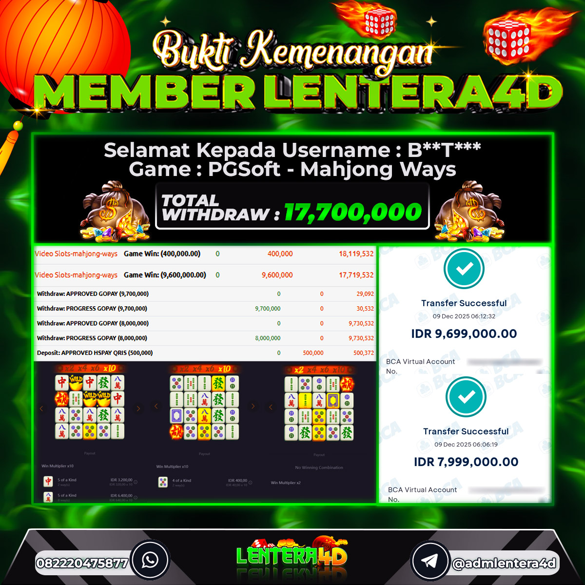 TOTAL KEMENANGAN : Rp. 17.700.000,-