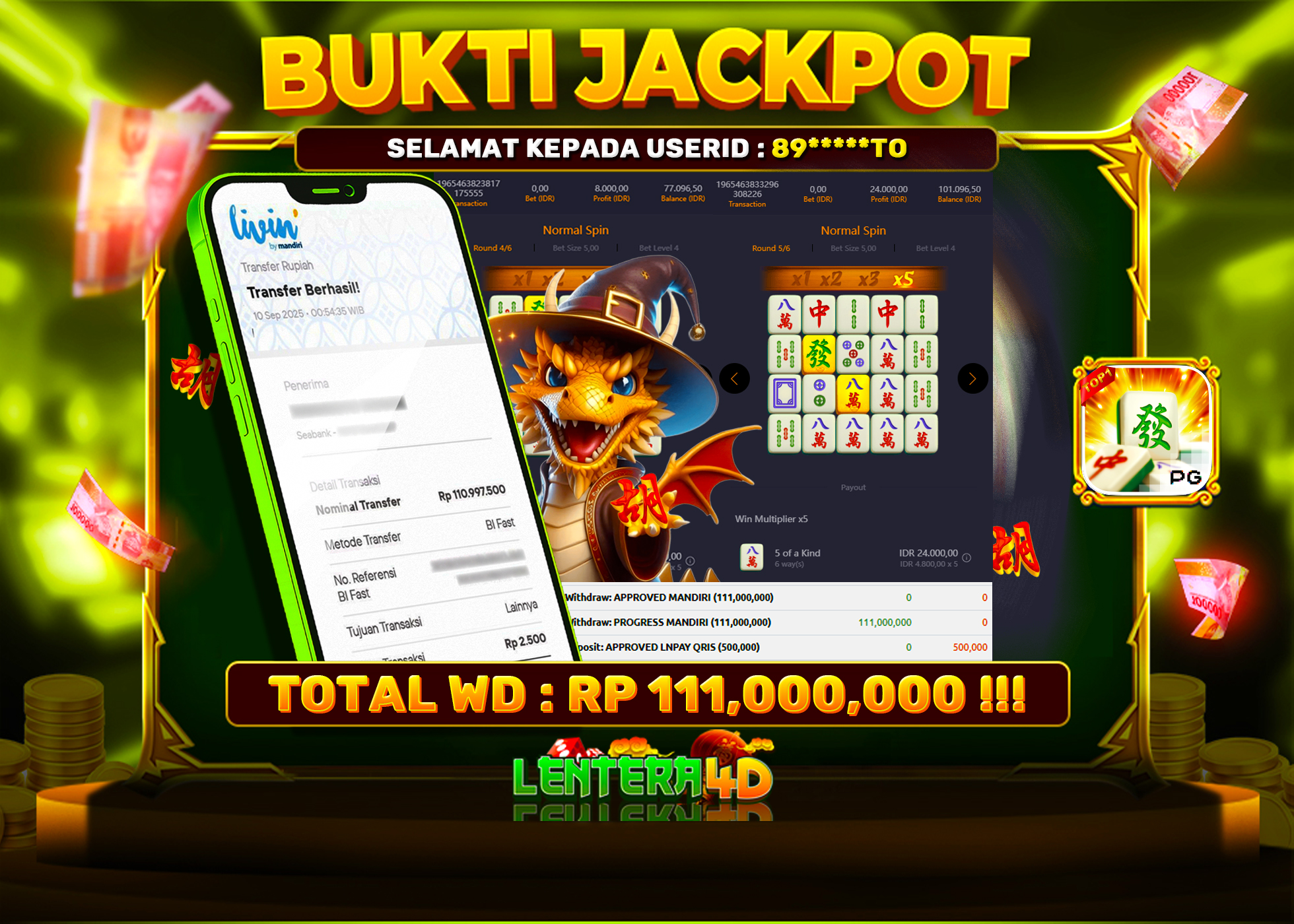 Setiap hari, member Lentera4D berhasil meraih jackpot besar dari berbagai provider slot ternama yang kami sediakan, seperti Pragmatic Play, Habanero, PG Soft, dan masih banyak lagi. Kami secara rutin menampilkan bukti screenshot atau rekapan kemenangan yang berhasil diraih, mulai dari kemenangan ratusan ribu hingga puluhan juta rupiah. Semua slip kemenangan ini kami hadirkan untuk membuktikan bahwa di Lentera4D, peluang menang itu nyata.