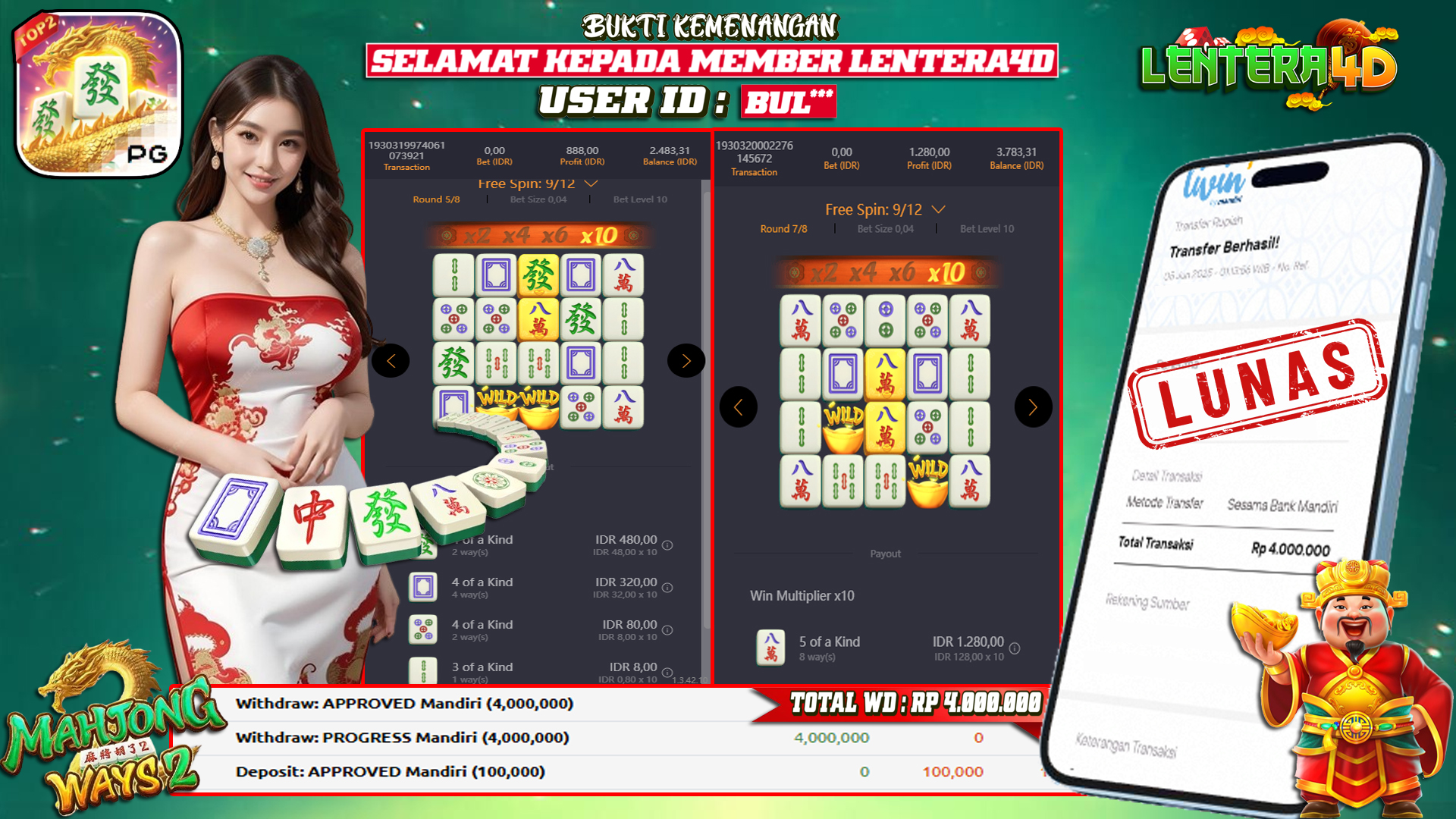 TOTAL KEMENANGAN : Rp 4.000.000,-