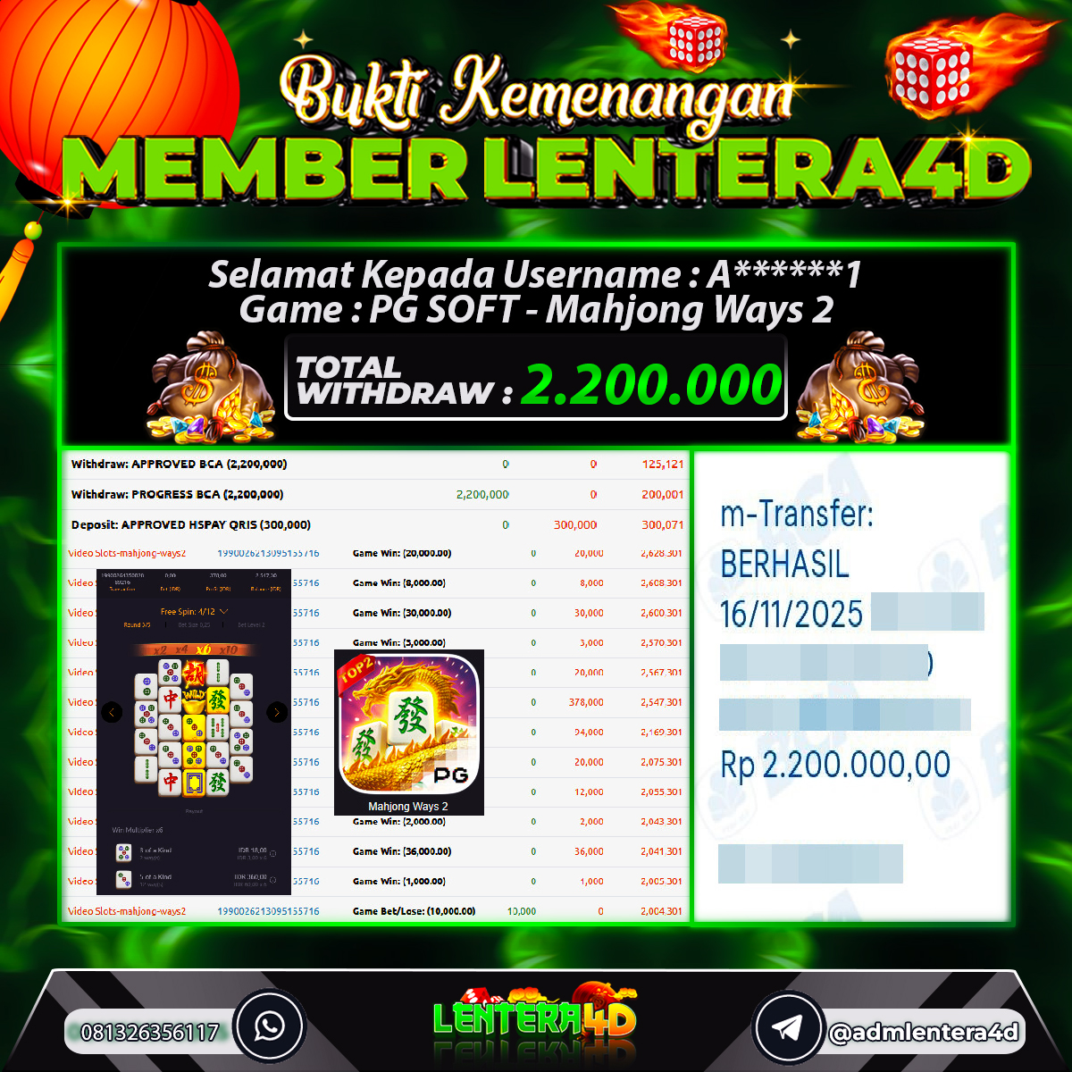 TOTAL KEMENANGAN : Rp. 2.200.000,-
