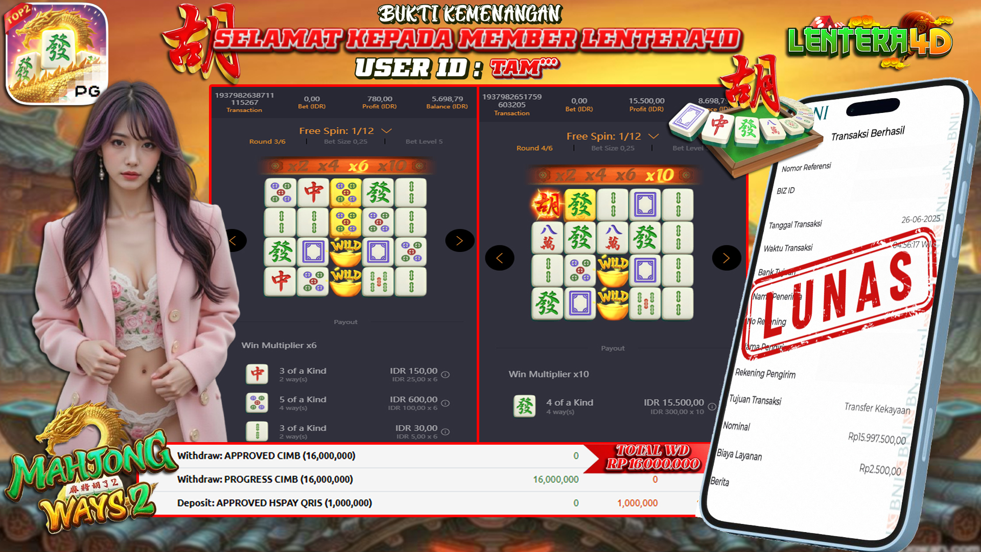 TOTAL KEMENANGAN : Rp 16.000.000,-