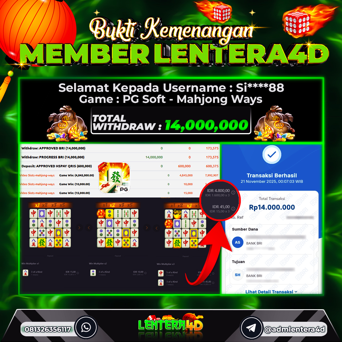 TOTAL KEMENANGAN : Rp. 14.000.000,-