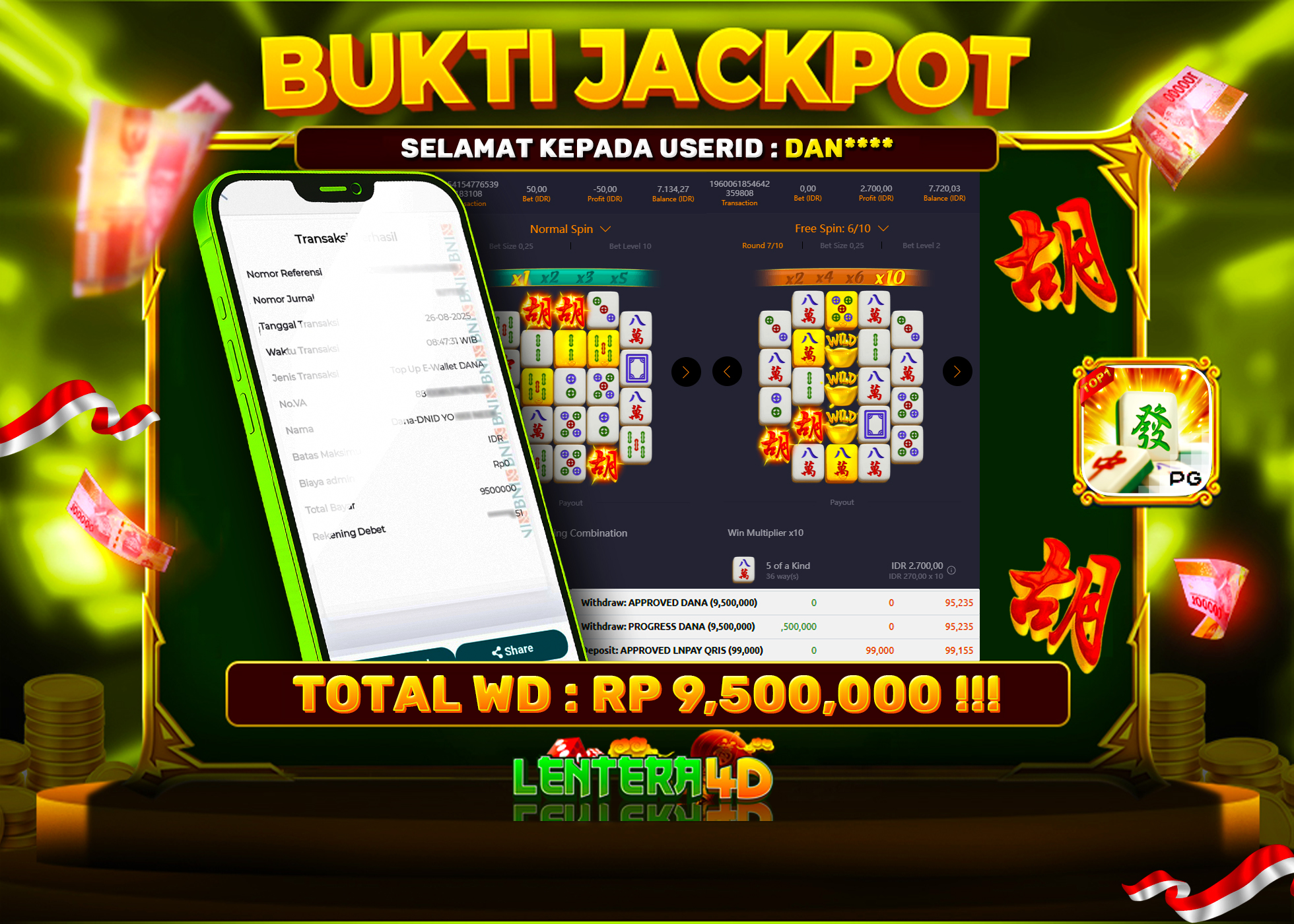 TOTAL KEMENANGAN : Rp 9.500.000,-