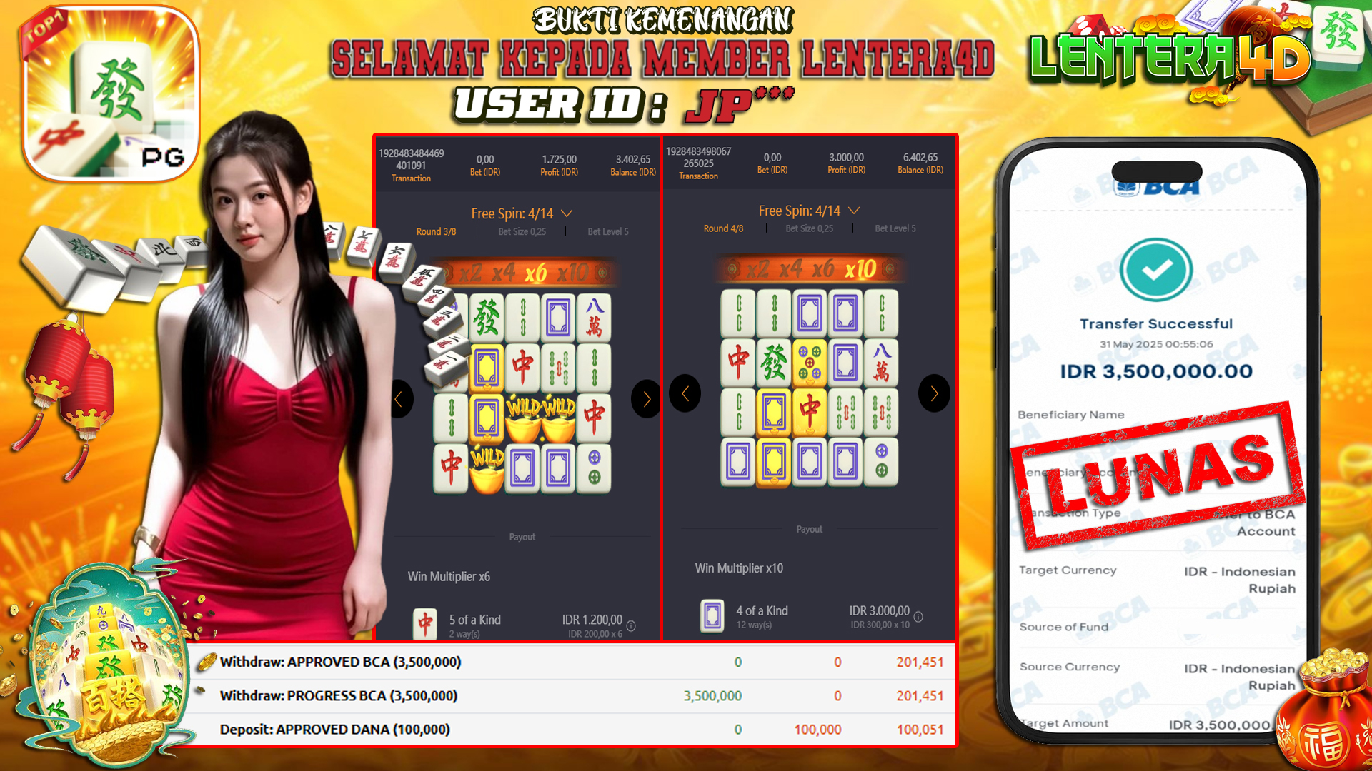 Satu lagi Bukti JP dan Pembarayan Sah Dan Dapat Dipertanggung Jawabkan, WD Berapapun Pasti Dibayar Lunas Hanya di Situs LENTERA4D. Hati Hati Kepada Pihak Pihak Yang Mengatas namakan Pihak LENTERA4D Untuk Melakukan Penipuan.