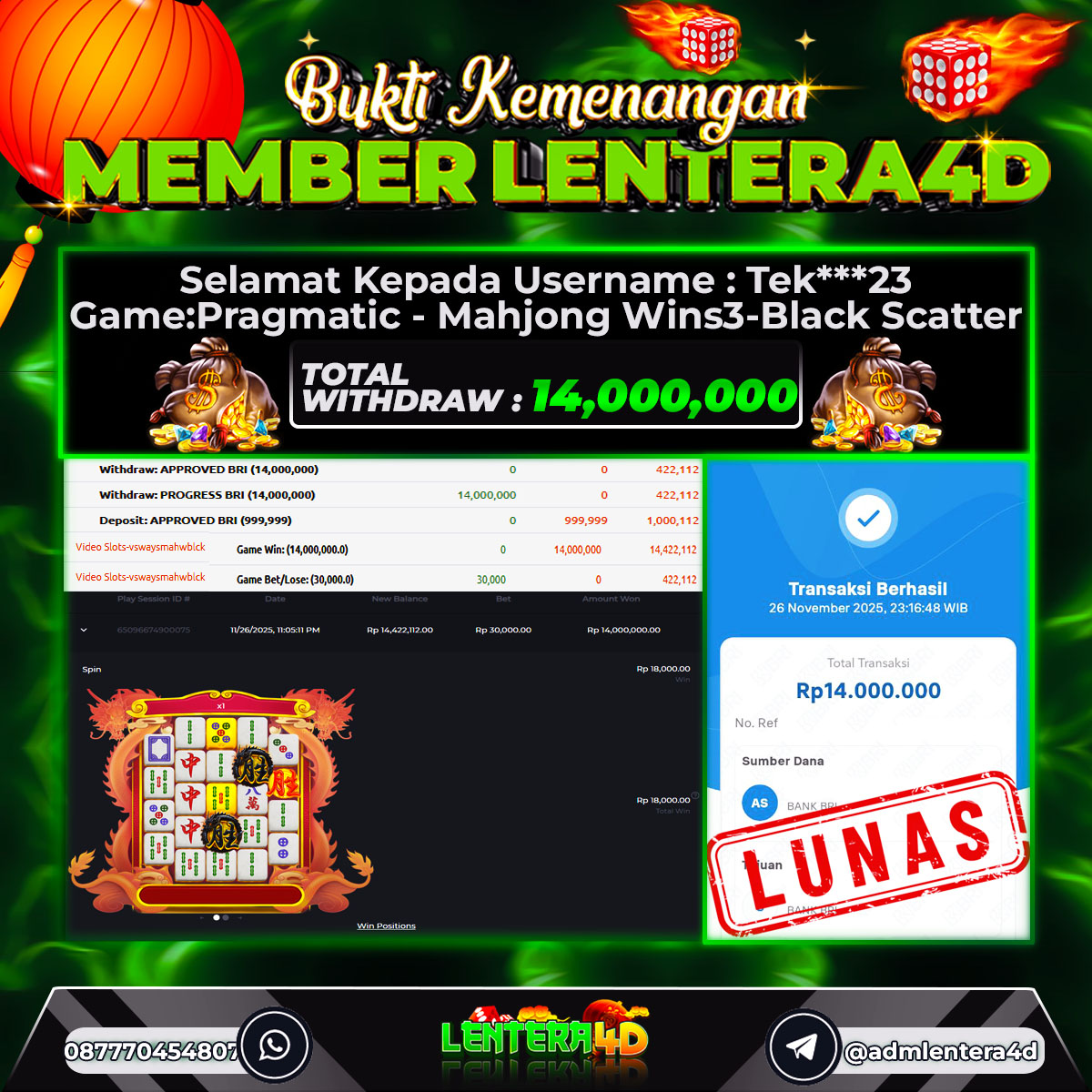 TOTAL KEMENANGAN : Rp 14.000.000,-